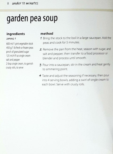 We all want to eat tasty, wholesome food but trying to squeeze cooking meals from scratch into an already busy life can be difficult. With these recipes, you can create a selection of delicious and straightforward dishes that won't take up all your spare time. You will find flavoursome meals made with fresh ingredients that can be cooked quickly with the minimum of fuss. Some of the recipes which are suitable for snacks, lunches and dinners take less than 10 minutes to cook proving that fast food needn't be bad food. Free of fiddly methods and laborious preparation, all of them look appealing and taste fantastic. 100 mouth watering recipes with clear and easy to follow ingredients lists and step by step methods.