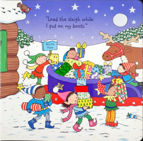 Sparkly Touch and Feel book. Christmas is a magical but busy time for everyone especially Father Christmas. Join him on his sleigh as he delivers his presents on Christmas Eve. This delightful book is not only full of sparkle but it has touchy feely textures and windows to peep into too.