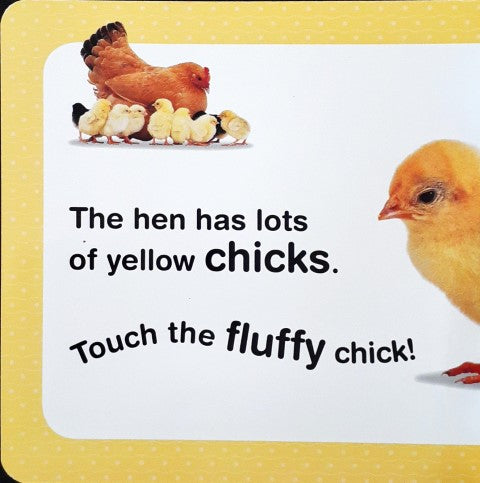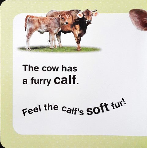 This charming book is a wonderful way to introduce your child to the world of farm animals. Featuring beautiful photographs and simple language that is easy to share with your little one, it also includes five different textures for small hands to explore and enjoy. With this delightful combination of sensory experiences, your child will have a fun and engaging introduction to these friendly creatures.
