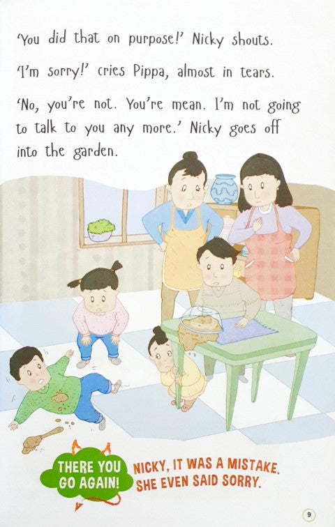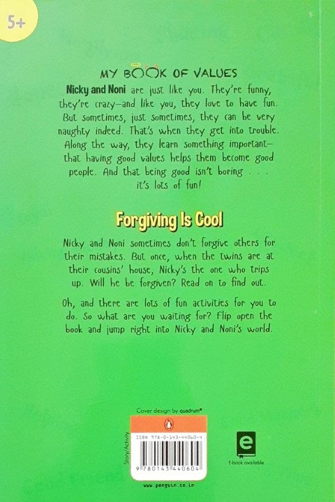 Nicky and Noni sometimes don't forgive others for their mistakes. But once when the twins are at their cousins' house, Nicky's the one who trips up. Will he be forgiven? Read on to find out. There are lots of fun activities for you to do. So flip open the book and jump right into Nicky and Noni's world.