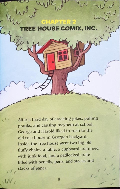 Pilkey plays with words and pictures, providing great entertainment. The story is immediately engaging—two fourth-grade boys who write comic books and love to pull pranks find themselves in big trouble. Mean Mr. Krupp, their principal, videotapes George and Harold setting up their stunts and threatens to expose them. The boys' luck changes when they send for a 3-D Hypno-Ring and hypnotize Krupp, turning him into Captain Underpants, their own superhero creation. Later, Pilkey includes several pages of flip-o-ramas that animate the action.
