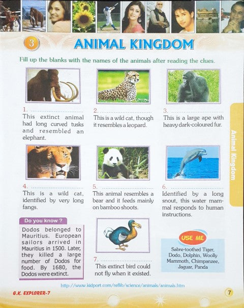 G K Explorer 7 book is specially designed for Grade 7 Students. Answers included. Children are natural learners and knowledge is ever growing, changing, updating very fast. Children of today's generation are fast growing. They are well aware about their surroundings and events. General Knowledge is vital for the students in their career. It is like an ocean and we picked a drop from it for the benefit of the students. Students love to be updated with the latest information.