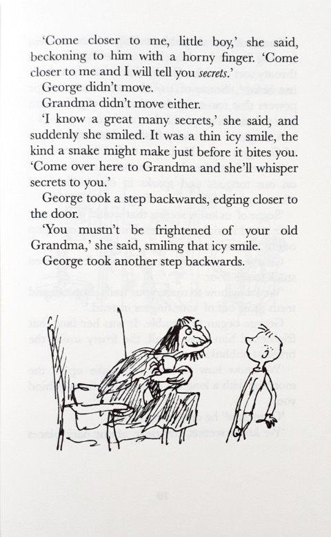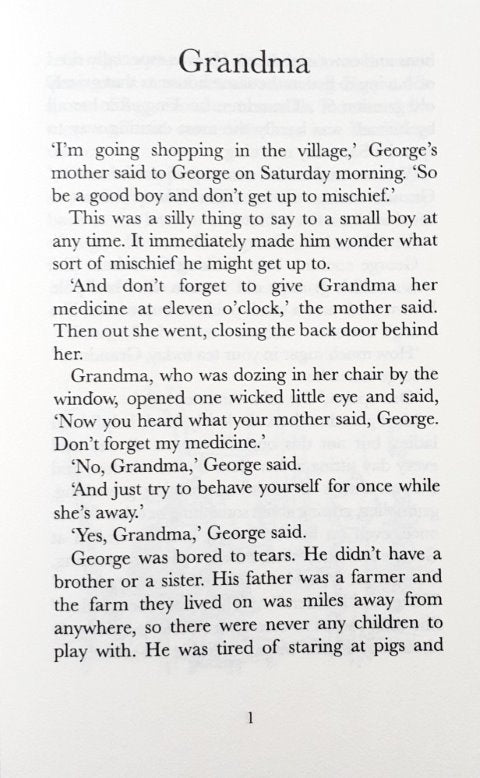 George's Grandma is a grizzly, grumpy, selfish old woman with pale brown teeth and a small puckered up mouth like a dog's bottom. Four times a day she takes a large spoonful of medicine, but it doesn't seem to do her any good. She's always just as poisonous after she's taken it as she was before. When George is left to look after her one morning, it's just the chance he needs .