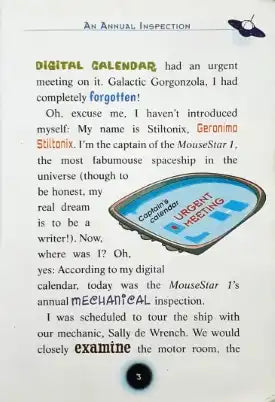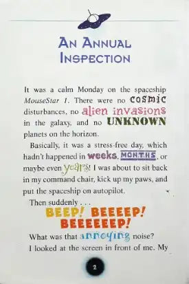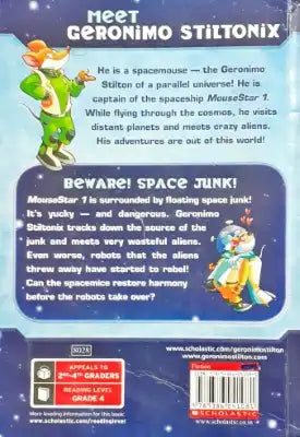 MouseStar 1 is surrounded by floating space junk! It's gross -- and dangerous. Geronimo Stiltonix discovers that it comes from wasteful aliens on a nearby planet. Even worse, robots that the aliens have thrown in the trash have started to rebel. It's up to the spacemice to restore harmony on the planet . . . and help them clean up.