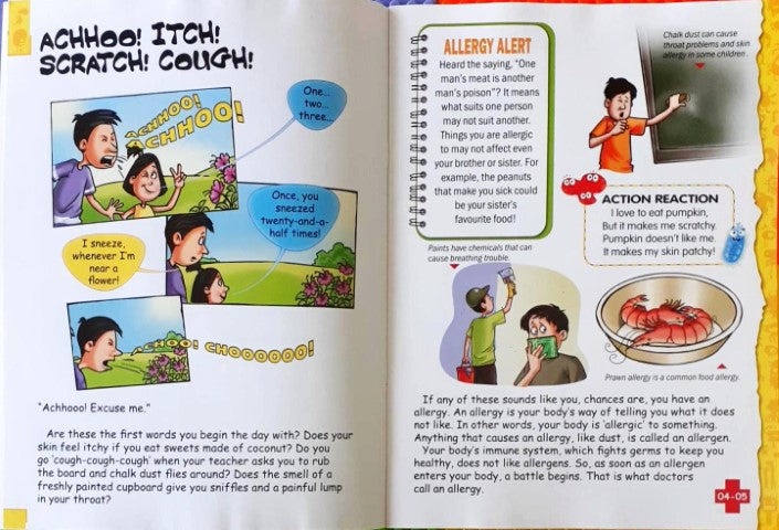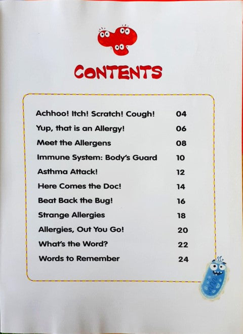 Ever wondered why some of your friends start sneezing when theygo near flowers? Or why some of your classmates cough while wipingthe blackboard? What makes some of us itch when we get into achlorinated swimming pool? The cause is an allergy. But what is anallergy? Why does it happen? Filled with answers to such questions,this book introduces you to naughty allergens and how antibodiesfight back. It tells you how different parts of your body take onan allergy. It also helps you understand what you can do to keepthose nasty sneezes, itches, and coughs away.