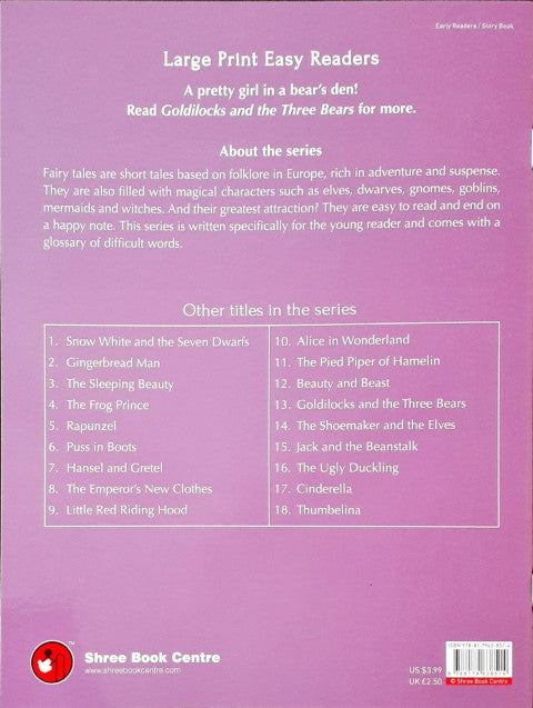 A pretty girl in a bear's den! Read Goldilocks and the Three Bears for more. Fairy tales are short tales based on folklore in Europe, rich in adventure and suspense. They are also filled with magical characters such as elves, dwarves, gnomes, goblins, mermaids and witches. And their greatest attraction? They are easy to read and end on a happy note. This book is written specifically for the young reader and comes with a glossary of difficult words.