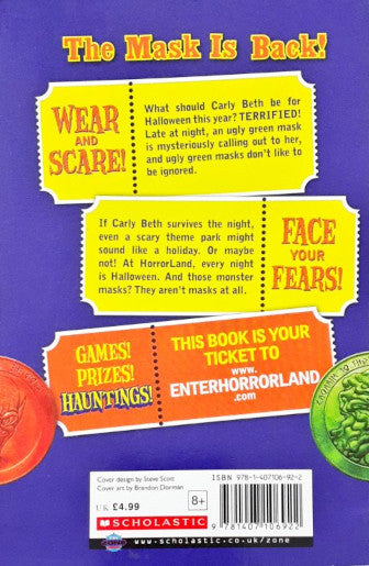 The Mask Is Back. WEAR AND SCARE. What should Carly Beth be for Halloween this year? TERRIFIED. Late at night, an ugly green mask is mysteriously calling out to her and ugly green masks don't like to be ignored. If Carly Beth survives the night, even a scary theme park might sound like a vacation. Or maybe not. At HorrorLand, every night is Halloween. And those monster masks? They aren't masks at all. FACE YOUR FEARS.