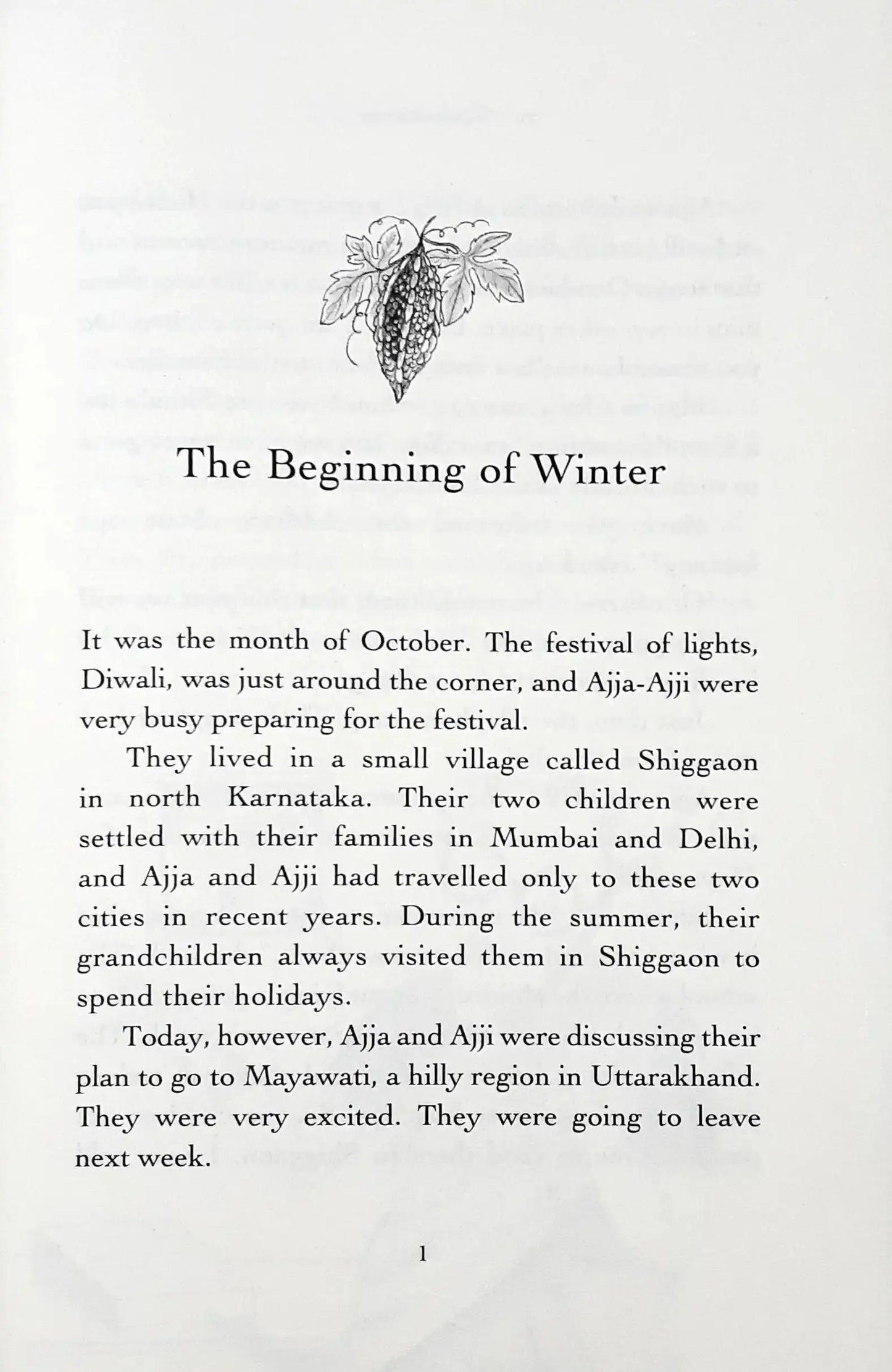 Embark on a magical journey with Anoushka, Krishna, Meenu, and Raghu, accompanied by their beloved Ajja and Ajji, to the enchanting hills of Mayawati in Uttarakhand. What begins as a simple trip soon turns extraordinary as Ajja steps into the role of storyteller, captivating the children with his tales. Surrounded by snow-covered peaks and majestic deodar trees, Ajja spins stories of kings and princesses, mermaids, and even bitter gourds, each one brimming with wisdom and compassion.