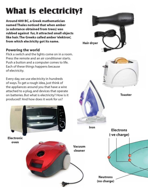Electricity lights up our homes and offices, and powers appliances like TVs, air-conditioners, and computers. But do you know how electricity is produced and how it reaches your home? Or how it remains stored inside batteries? Containing descriptive illustrations, interesting trivia, and easy-to-do experiments, this book helps readers grasp the science behind this everyday phenomenon easily.