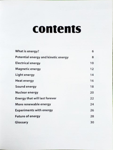 From a stationary rock to a rushing waterfall, energy is everywhere. This book covers the different types of energy and explains the roles they play in the world around us. Elaborating on the underlying concepts, using visuals, experiments, and trivia, it tells readers why renewable energy is gaining importance and how they can help conserve energy.