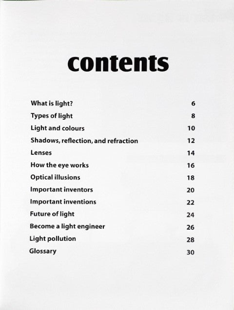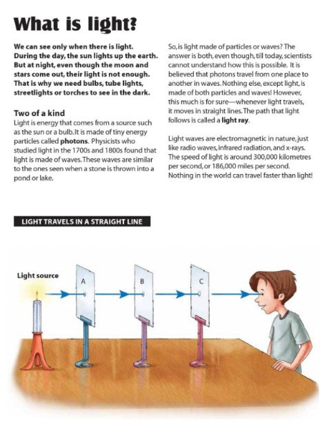 Did you know that light can bend, split, and bounce? Have you ever wondered why we cannot see colour in dimly lit places? Can you name the three major sources of light pollution? This book explains various concepts on light, and helps explore the world of light, shadows, and colours with hands-on experiments, illustrations, and facts.