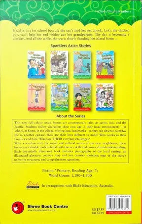 Hazel is late for school because she can't find her pet chook. Loki, the chicken boy, can't help her and neither can her grandparents. The day is becoming a disaster. And all the while, the sea is slowly flooding her island home… This new full colour Asian stories are contemporary tales set across Asia and the Pacific. Students follow characters their own age in their local environments - at school, at home, in the village, visiting local landmarks - so they can observe everyday life in another culture. How are their lives different to mine? Who works in their families and how? What are their everyday challenges? With a window onto the social and cultural norms of our near neighbours, these books are valuable tools to build both literacy skills and cross cultural understanding. Each beautifully illustrated book includes photography of the local setting, an illustrated glossary, country map and key country statistics, map of the story's narrative structure and comprehension questions.