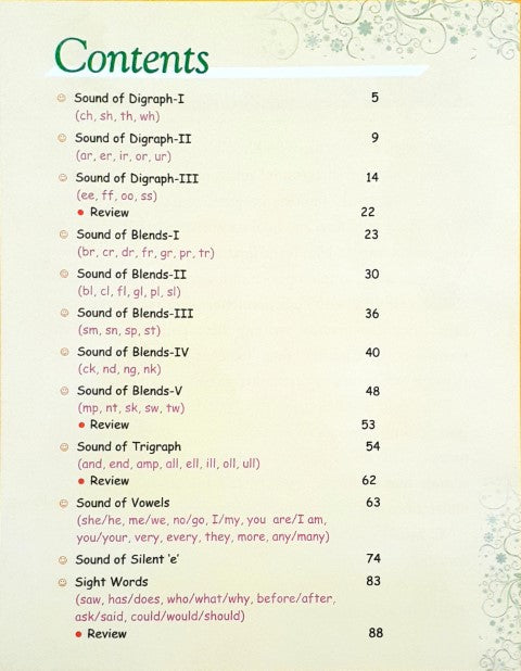 Wonderful workbook to understand the concept of digraphs, blends, trigraphs, sight words for beginners, vowel sounds in sight words and silent letter sound.