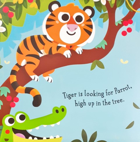 Lift the flaps to reveal pop up surprises as you play hide and seek in the jungle