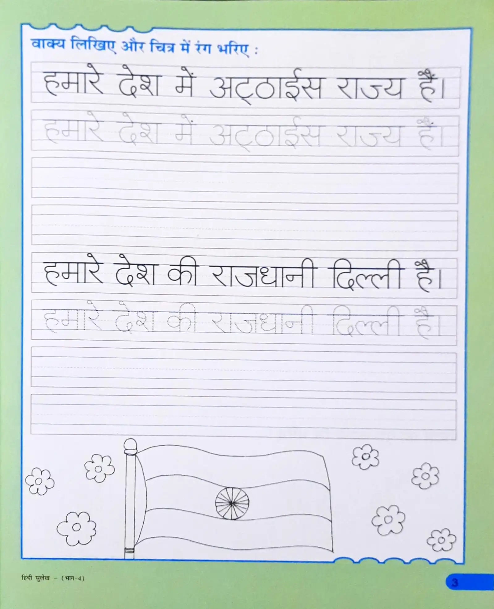 This book provides enough pages to practice Hindi sulekh writing for better handwriting covering letters, words, sentences & few activities too