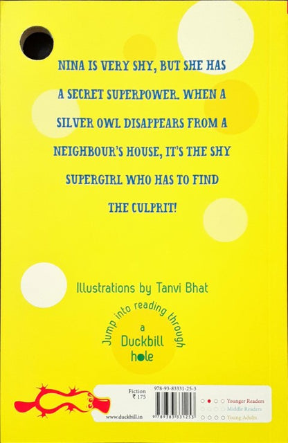 Nina is very shy, but she has a secret superpower. When a silver owl disappears from a neighbour's house, it's the shy supergirl who has to find the culprit.