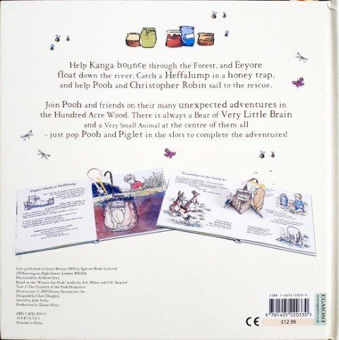 Help Kanga bounce through the forest and Eeyore float down the river. Catch a Heffalump in a honey trap and help Pooh and Christopher Robin sail to the rescue. Join Pooh and friends on their many unexpected adventures in the Hundred Acre Wood. There is always a Bear of Very Little Brain and a very small animal at the centre of them all, just pop Pooh and Piglet in the slots to complete the adventures. Some of the pieces of Pop in the slot are not intact, can be used as a storybook.