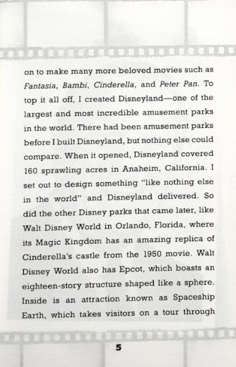 As a child, I had a wild imagination and a great curiosity. As I grew up, those qualities led me to become a cartoonist. Eventually I turned my drawings into films and began my own animation business. After pursuing a career as an animator, film producer, director, screenwriter, voice actor, entrepreneur and entertainer, I created Disneyland theme park. I became tremendously successful and beloved by children of all ages. I am Walt Disney.