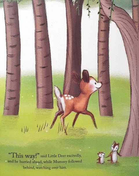 I adore the thrill of exploration, and most of all, I adore my mummy! One fine morning, Little Deer felt a longing to venture beyond the familiar surroundings of his home. "I want to discover new things," he shared with his mummy. Understanding his curiosity, Mummy Deer responded, "Then let's embark on an exciting exploration, and together, we'll uncover the wonders that await."