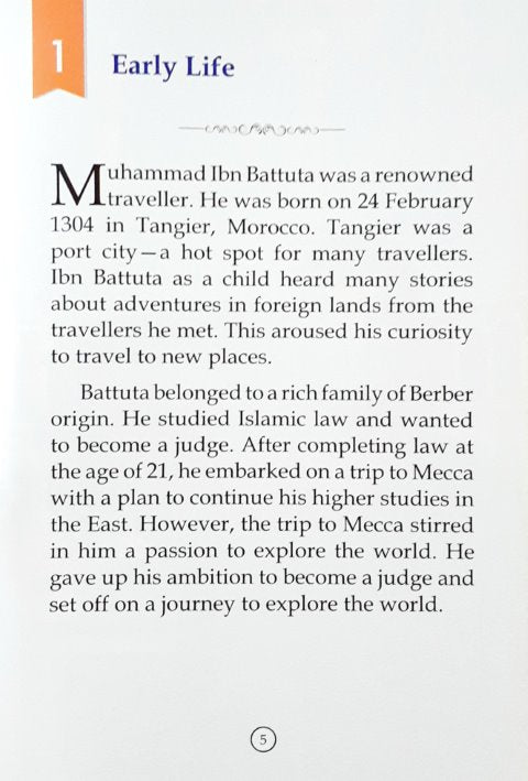 Simple & easy text for young kids with attractive colourful illustrations describing the achievements & life story of Ibn Battuta, Ibn Batuta
