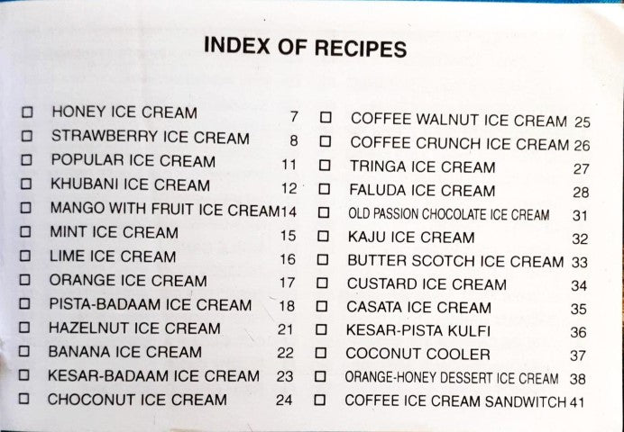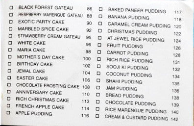 Collection of 90 recipes spread over Ice Creams, Cakes, Gataeu & Puddings with colourful illustrations of the dishes.