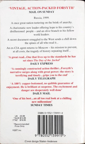 And so develops a thrilling and increasingly frightening adventure - Jason Monk, ex-CIA, who used to run agents into the Soviet Union, is recruited and slips back into Russia, into the desperate Moscow world of poverty, luxury, gangsters and prostitutes and underneath it all, the titanic power struggle to ensure the outcome of the forthcoming elections.