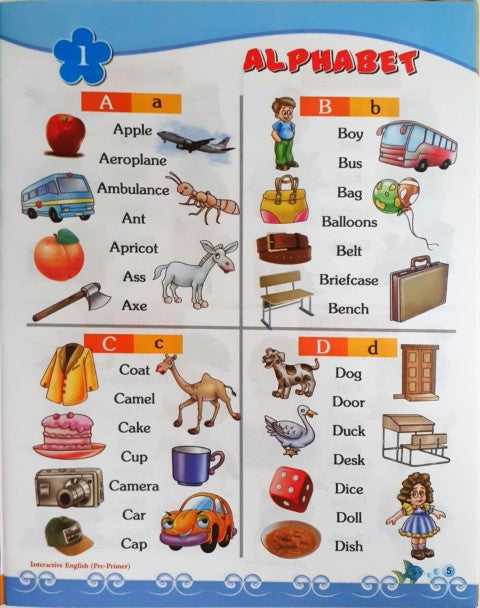 The book starts with English alphabet wherein both capital and small letters have been introduced. They are supplemented with some words and illustrations for each. Also introduced in this book are sounds, vowels and articles. Learning to read should be a fun experience. Hundreds of colourful illustrations make words and things easy to recognize. Things, actions and animals are taken from the children's close environment. Packed with colourful illustrations and words for each letter, this book is ideal for arousing your child's interest in learning and recognizing English alphabet.