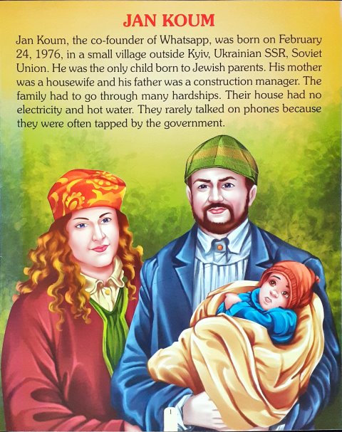 Simple & easy text for young kids with attractive colourful illustrations describing the achievements & life story of Jan Koum