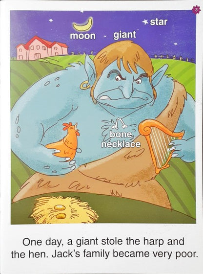 Jack sells his cow for a few magic beans. What happens next? Difficult words are highlighted with pictures to develop a better understanding along with an activity page at the end Fairy Tales for Early Readers is a series that helps you introduce your child to the world of books. Each story has been carefully created, keeping in mind the world of the young reader. Every title is beautifully illustrated and has simple language, opening up the world of fairy tales for the early reader.