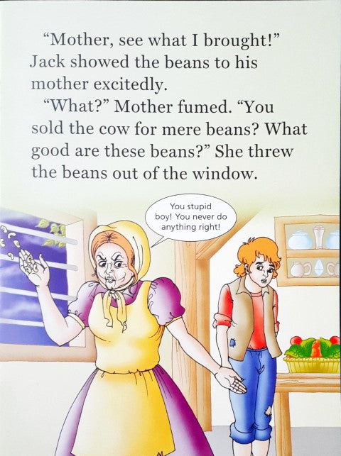 Lazy Jack saves the day in Jack and the Beanstalk. Fairy tales are short tales based on folklore in Europe, rich in adventure and suspense. They are also filled with magical characters such as elves, dwarves, gnomes, goblins, mermaids and witches. And their greatest attraction? They are easy to read and end on a happy note. This book is written specifically for the young reader and comes with a glossary of difficult words.