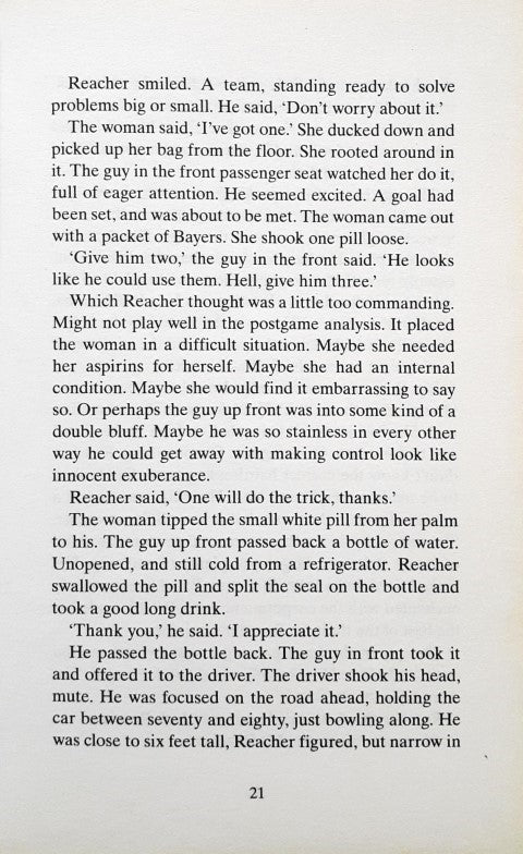 When you possess the formidable stature and rugged demeanor of Jack Reacher, coupled with a prominently broken nose hastily mended with gleaming silver duct tape, hitching a ride becomes a daunting task. Nonetheless, Reacher remains resolute, driven by unfinished matters that beckon him to Virginia. Persistence becomes his ally as, against the odds, he is finally offered a lift by a trio of enigmatic strangers—a duo of men and a woman.