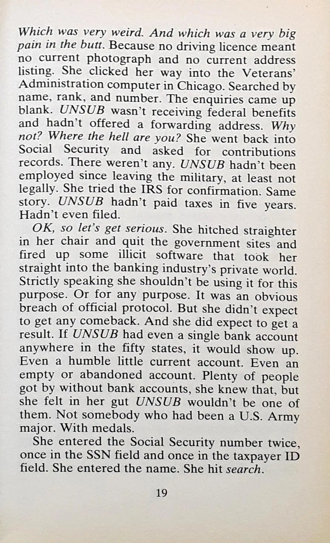 No job, no ID, no last known address. Reacher is a man of mystery, drifting from place to place, but he never turns down a plea for help. When a woman tracks him down, he’s drawn into a world of danger and deception.