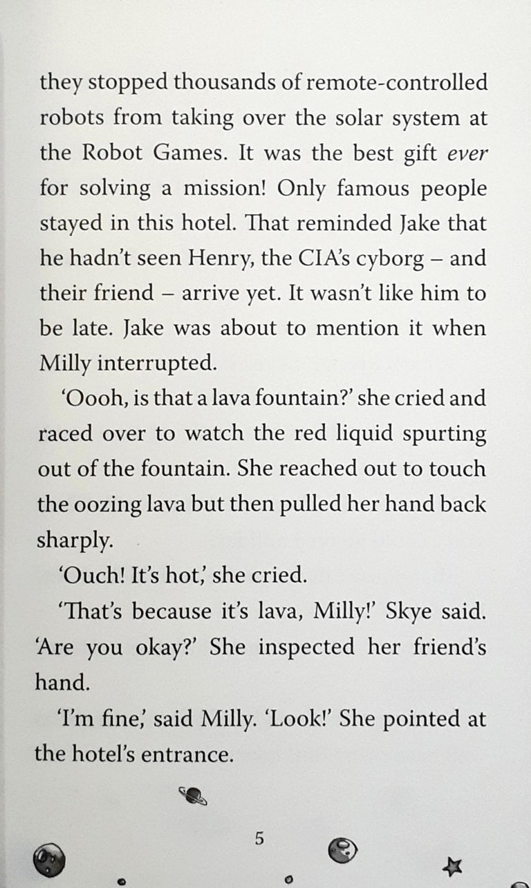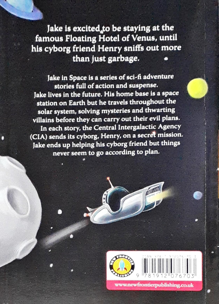 Join Jake in the thrilling adventure at the renowned Floating Hotel of Venus, where excitement quickly turns to suspense as his cyborg friend Henry uncovers more than just garbage. "Jake in Space" unfolds as a series of sci-fi tales filled with action and suspense. In each story, the Central Intergalactic Agency (CIA) sends its cyborg, Henry, on a clandestine mission, and Jake inevitably becomes a key player in assisting his robotic friend. However, the duo finds that things rarely go according to plan. With their quirky tales and fast-paced narrative, these stories are designed to captivate and engage reluctant young readers in the exciting world of space exploration.