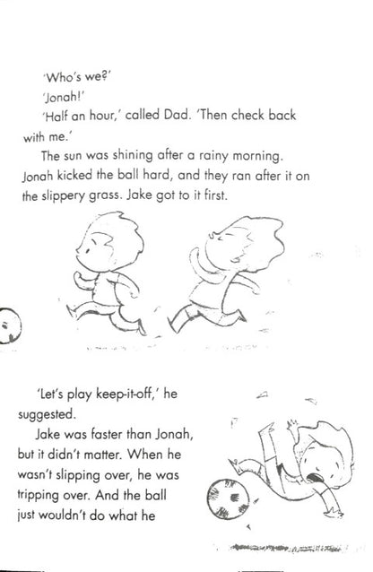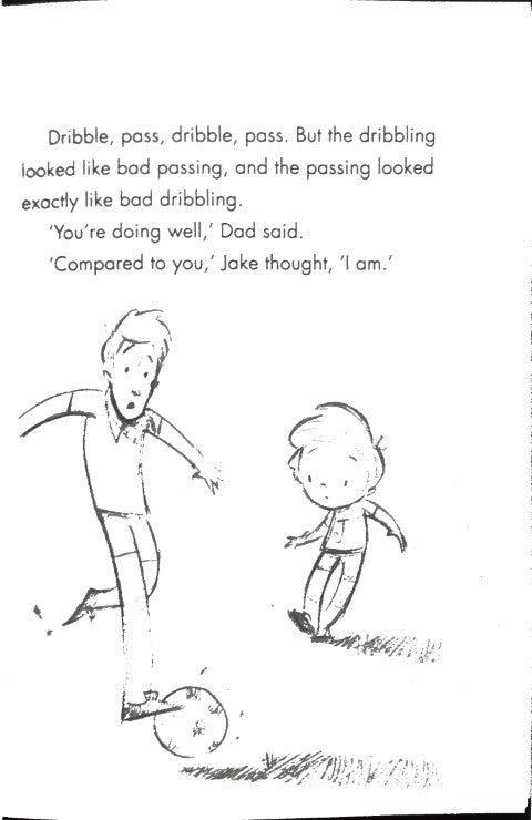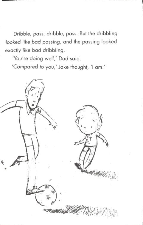 But Jake quickly discovers that soccer isn’t as easy as it looks. When he isn’t tripping, he’s slipping. His dribbling looks like bad passing and his passing looks like bad dribbling. Will he ever get his great game?