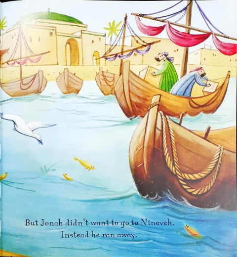 Why is Jonah thrown into the stormy sea? Read about Jonah's adventure and find out how he ends up inside a big fish