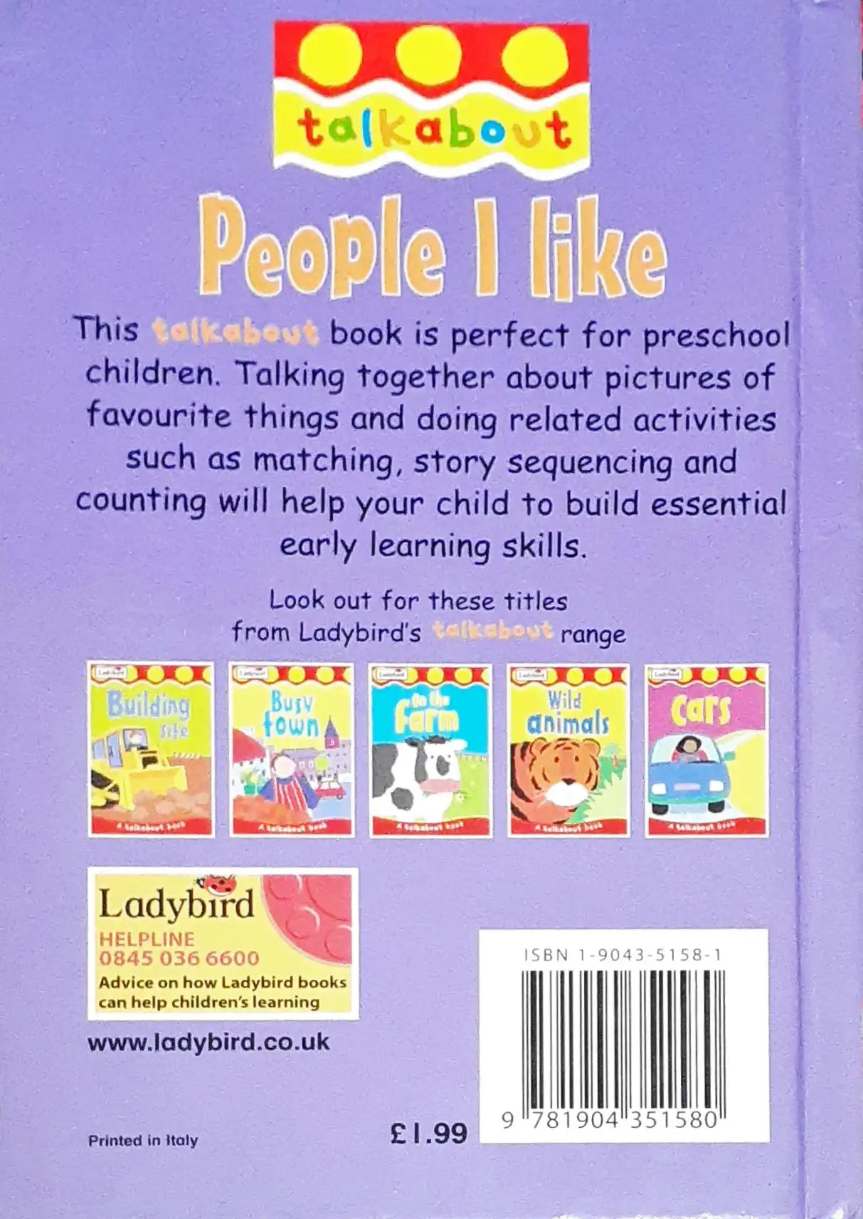 Toddler Talkabout Series. This talkabout book is perfect for preschool children. Talking together about pictures of favourite things and doing related activities such as matching, story sequencing and counting will help your child to build essential early learning skills