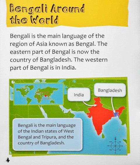 Provides information about the Bengali language, its speakers, and basic vocabulary.