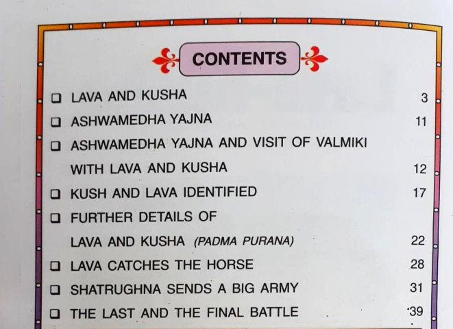 This book portrays the life of Luv Kusha, divine story of great valour of the sons of Sita based on Valmiki Ramayana nd Padmapurana