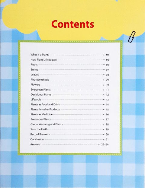Plants are an important part of our environment. They also add beauty and colour to our surroundings. Learning about Plants explains interesting facts about plants through spot-the-difference, maze, and colouring activities, besides various simple counting and writing exercises. These easy-to-do activities promote creative thinking and problem solving among young minds, making the title a fun supplement to their textbooks. At the same time, it acquaints them with the importance of plants and trees.