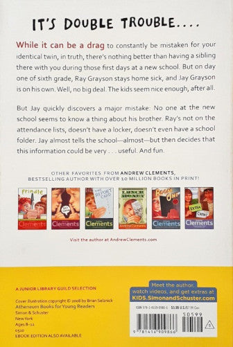As Ray and Jay exploit a clerical oversight, they each find new views on friendship, honesty, what it means to be a twin -- and what it means to be yourself. Entertaining, thought-provoking, and true-to-life, this clever novel is classic Andrew Clements times two: twins!