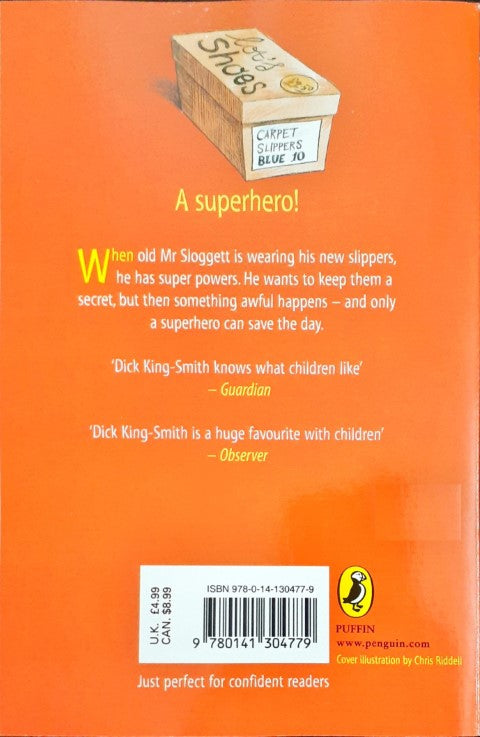 The great thing about being 75 years old is that you can wear your slippers everywhere - Percy Sloggett wears his in the garden and to the shops as well as in the house. In time his battered old slippers need to be replaced and he gets something of a surprise when he discovers that his new pair are magic. They make him feel years younger and also make him strong and clever. Percy is desperate to tell someone his secret and so tells his friend's grand-daughter, Lollie - for of course children understand magic better than adults do. Percy's slippers turn out to be life-savers as they enable him to leap across the road to save Lollie from being knocked over by a car.