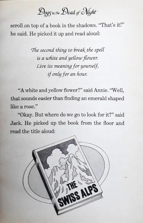 Beware of avalanches. When the magic tree house whisks Jack and Annie back in time to the highest pass in the Swiss Alps, they discover an ancient monastery filled with monks and Saint Bernard dogs. Annie can’t resist offering to train a wild young dog named Barry. Will Barry lead Jack and Annie to the mysterious flower they need to save a friend’s life? Or will he only lead them into danger? Before the night is over, Jack and Annie will be forced to use some crazy magic! Join everyone’s favorite brother and sister duo on an adventure that is scary and magical, and more fun than they’ve ever had!