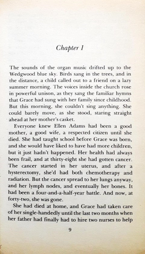 As she begins to heal her own pain, Grace reaches out to others who have suffered like her, offering solace to battered women and children. Along the way, she meets Charles Mackenzie, a New York lawyer who desires nothing from her except to mend her wounds, hear her secrets, and create the loving family she craves. However, as happiness finally dawns on her, Grace faces a new threat from a relentless tabloid press and a malicious enemy from her past, willing to stop at nothing to destroy her.