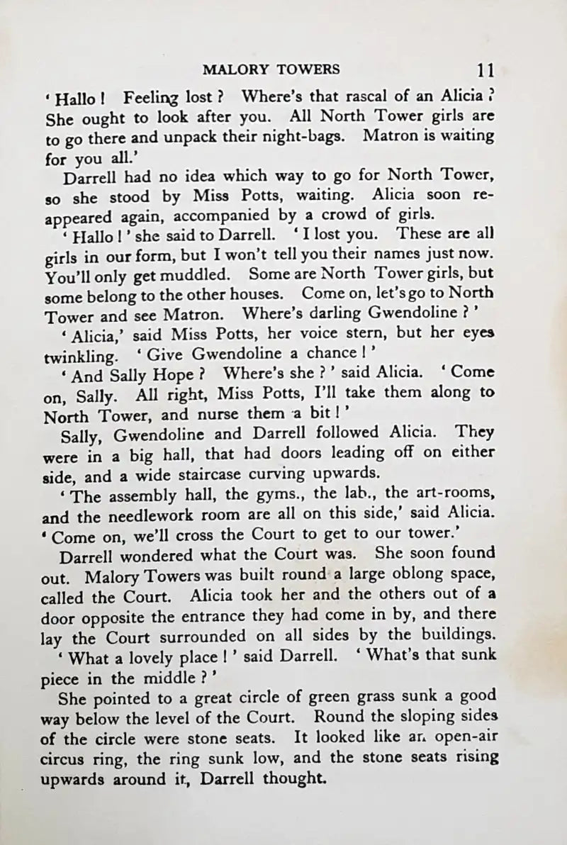 Darrell Rivers begins her happy life at Malory Towers two terms later than the other girls, but she soon makes firm friends with Sally, the steady one, and the adoring Mary Lou.