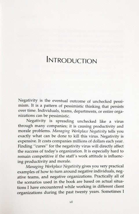 Managing Workplace Negativity gives managers, team leaders, trainers, and other human resources professionals much-needed help in treating the negativity bug. It will help readers: