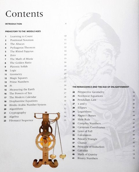 Over many centuries, great minds puzzled over the evidence and, step-by-step, edged ever closer to the truth. Behind every one of these breakthrough moments there's a story about a confounding puzzle that became a discovery and changed the way we see the world. Here are one hundred of the most significant and we call these Ponderables. In Mathematics: An Illustrated History of Numbers, you'll get a peak into the Imponderables, too, the mysteries yet to be solved that will one day lead great thinkers forward to an even greater understanding of the universe.