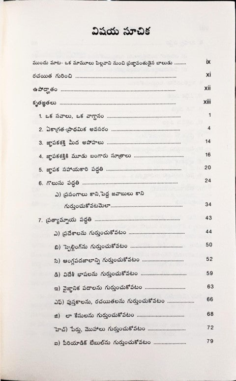 Easy Techniques to Remember Names, Faces, Calanders, Dates, Telephone Numbers, Foreign Language, Textbook Answers, Maps, Passwords, Appointmemts, Schedules, Speeches & much much more... A SIMPLE AND EFFECTIVE GUIDE TO MEMORY ENHANCEMENT Can you remember a list of 20 different objects in less than two minutes? Can you remember the names of all the people present at a party? Can you memorize an entire 100-year calendar in less than five minutes? Can you determine someones date of birth or how much money he has in his pocket without him telling you? Can you remember telephone numbers, passwords, faces, playing cards, appointments, textbook answers with ease? This book will make achieving all this and a lot more possible. In simple and lucid language, its pages impart memory techniques accompanied by practice exercises and colourful illustrations, that have helped countless students, businessmen, professionals, housewives and senior citizens boost their memory as well as their confidence. Students taking various school and college exams will soon find learning History, Geography, Science and languages to be mere childs play.