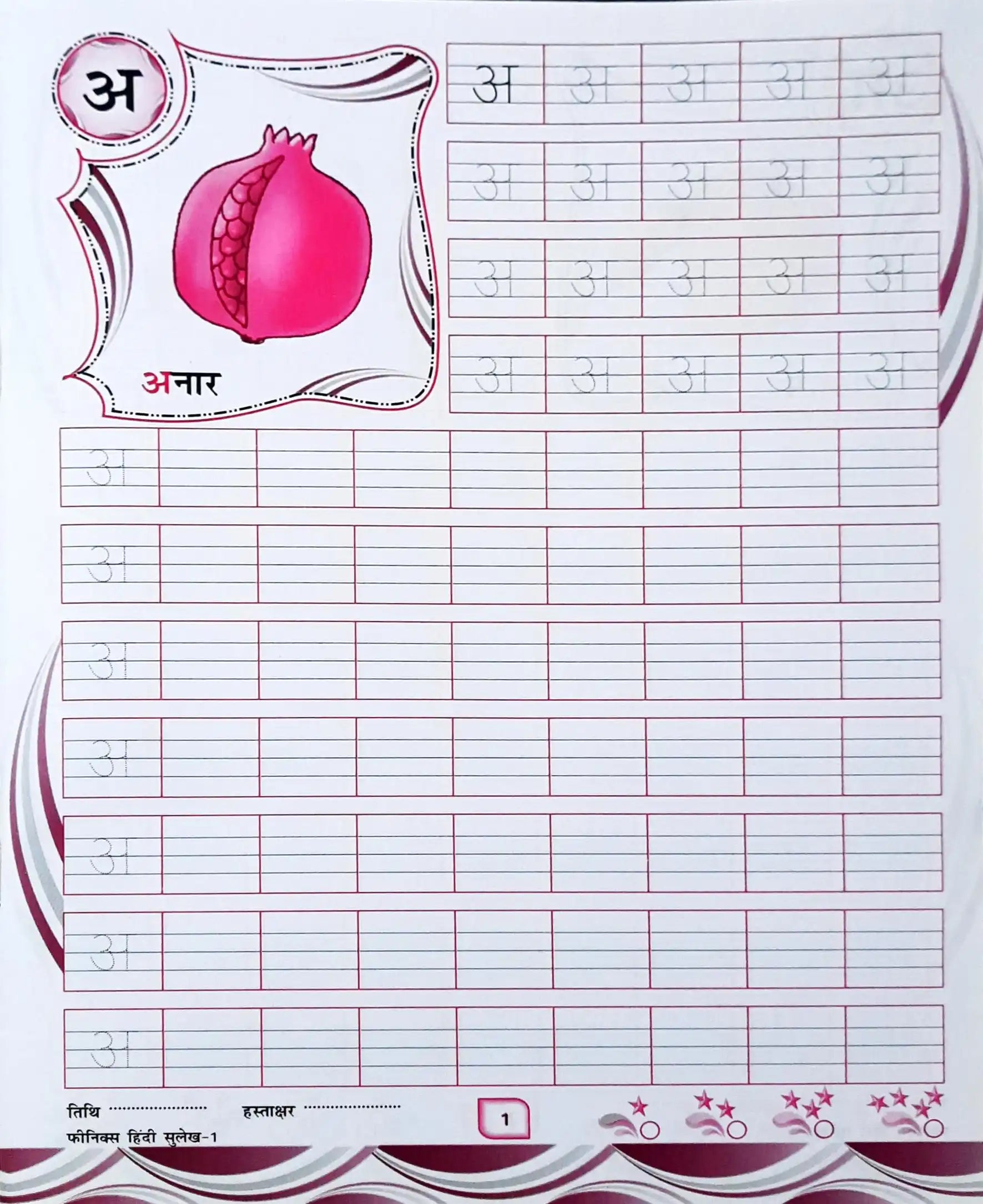 This book provides enough pages to practice Hindi sulekh writing for better handwriting covering letters, words, sentences & few activities too