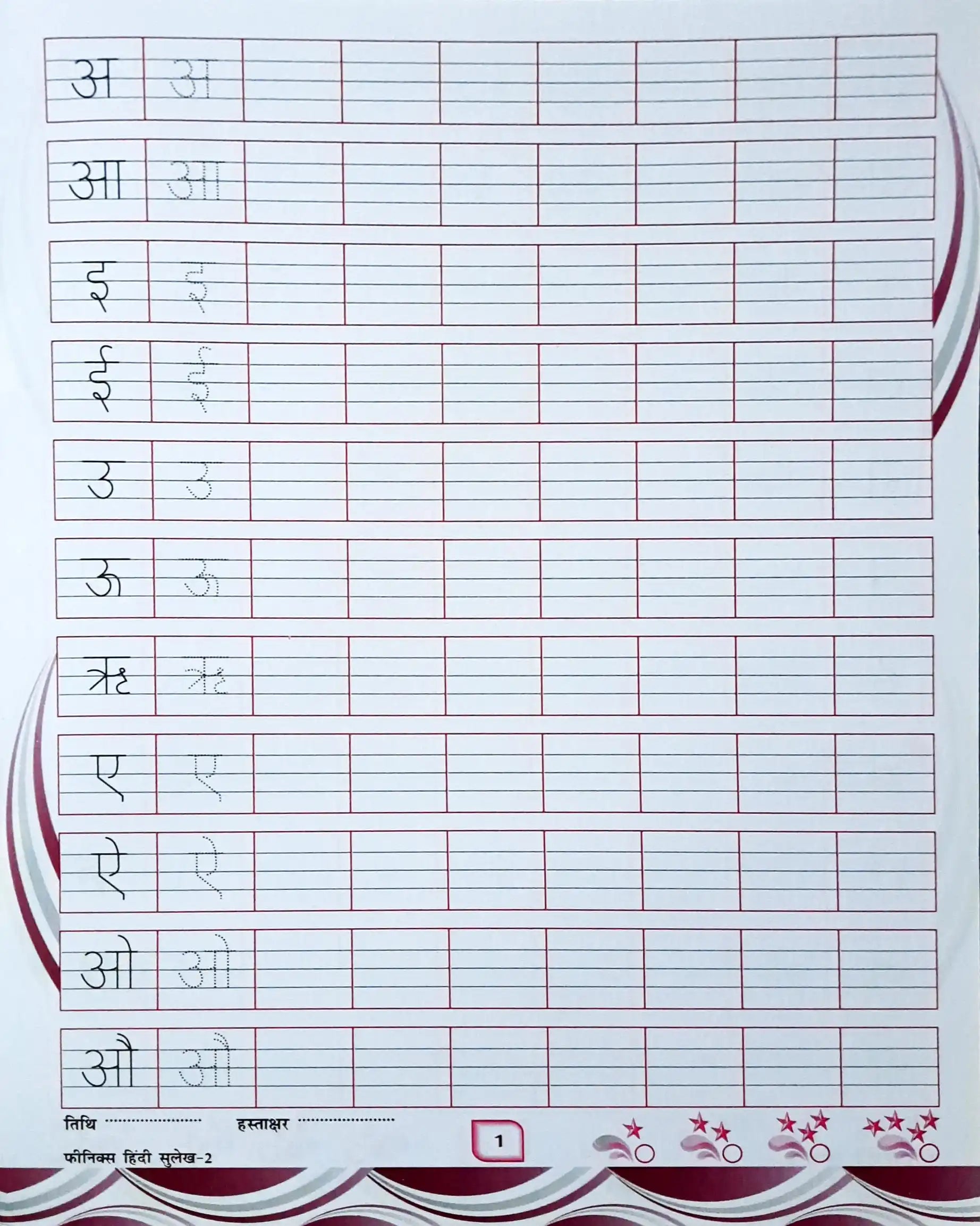 This book provides enough pages to practice Hindi sulekh writing for better handwriting covering letters, words, sentences & few activities too