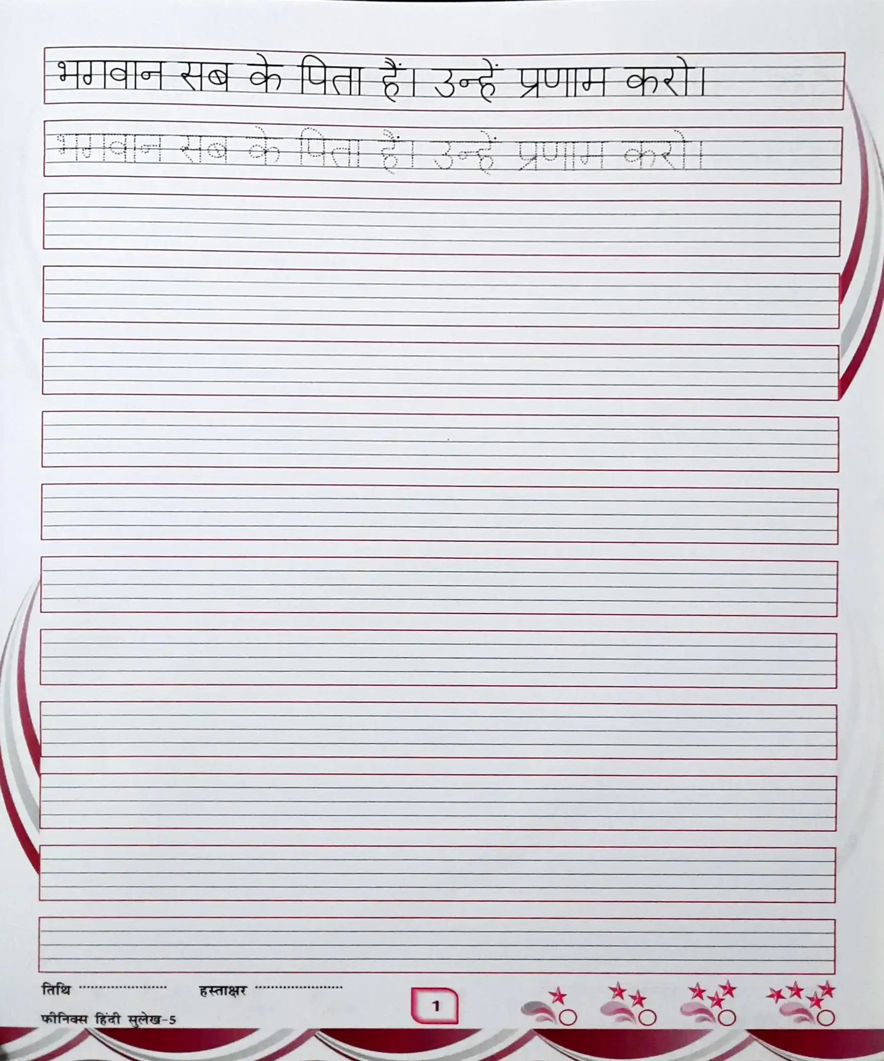 This book provides enough pages to practice Hindi sulekh writing for better handwriting covering letters, words, sentences & few activities too
